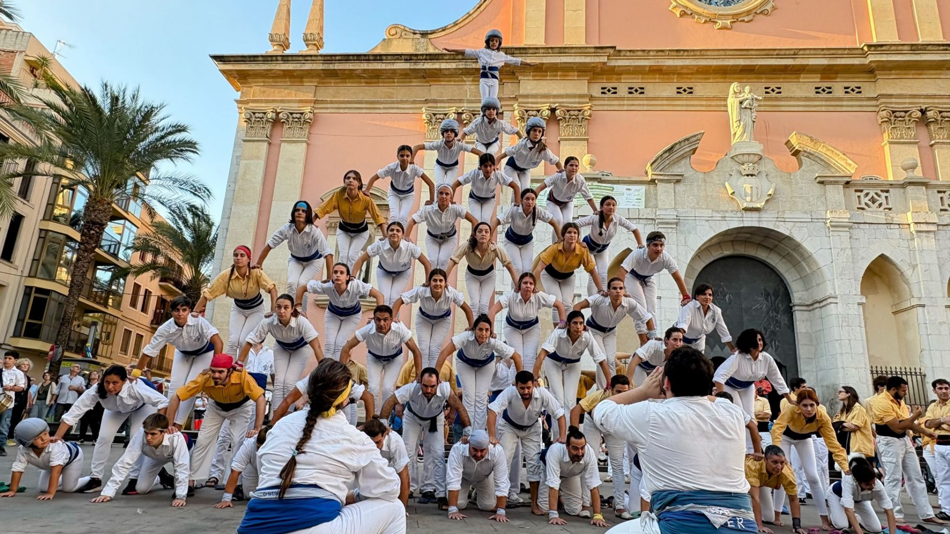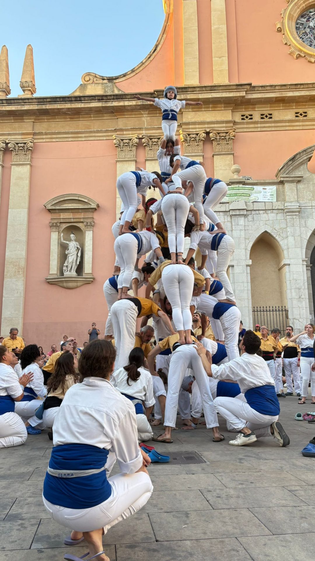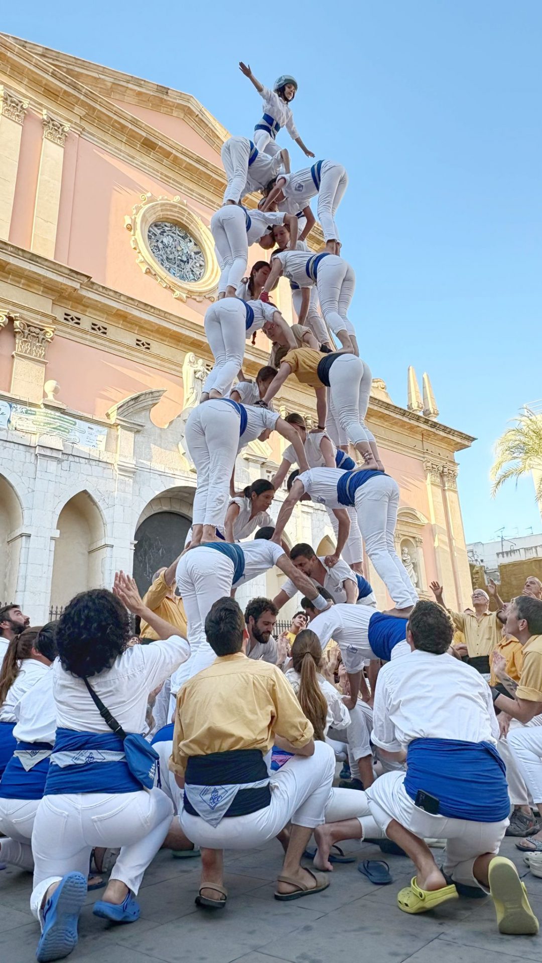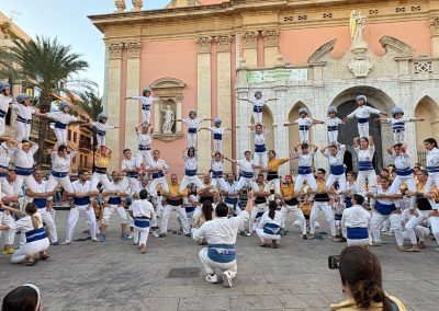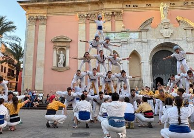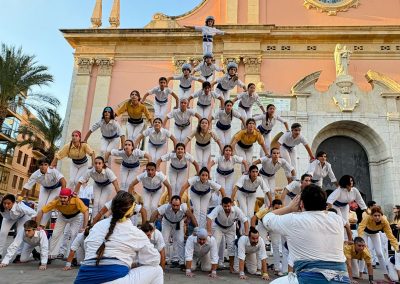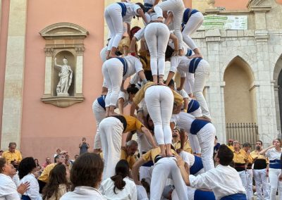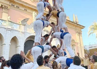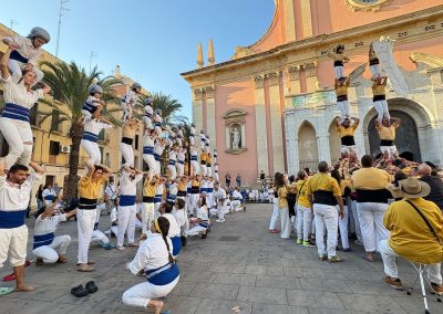 Era una de les fites que ens havíem marcat per aquesta temporada. No la fèiem des del 2014 i enguany, onze anys després, hem tornat a conquerir la Pira de 12! Ha estat durant la Diada dels Orígens, l’actuació que compartim amb els Bordegassos de Vilanova. Som dues colles germanes amb membres que han estat vestit les dues camises. Per això per la diada dels orígens cada casteller i falconer llueix la primera camisa que es va posar. També hem completat el Capdil 9×10, el Vol de 5, la Tripira amb pilar de 4 i el Fòcking de 10 puntes amb dos triangles i dues cantonades. Quina gran diada!