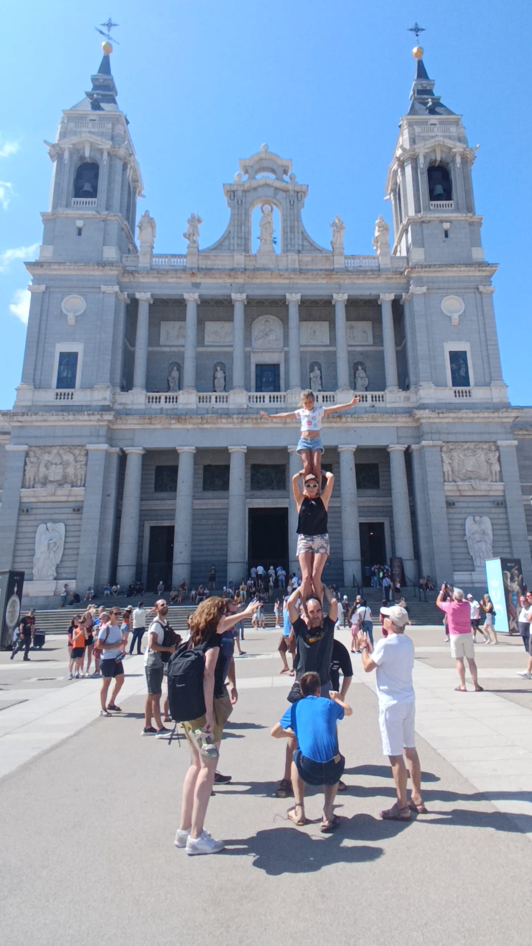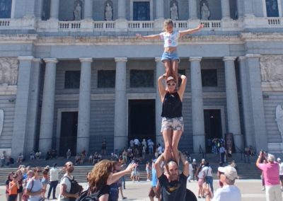 Els Falcons de Vilanova hem portat un trosset de cultura catalana fins a la capital de l’Estat, convidats pels Castellers de Madrid. Li hem ensenyat un pilar a la Catedral de l’Almudena i una minitripira al Palacio Real, hem trepitjat el Km 0 i hem pres un “café con leche en la Plaza Mayor”. Però el més emocionant ha estat compartir plaça amb els amfitirions i els Castellers de Cornellà per les Fiestas del Carmen de Vallecas.